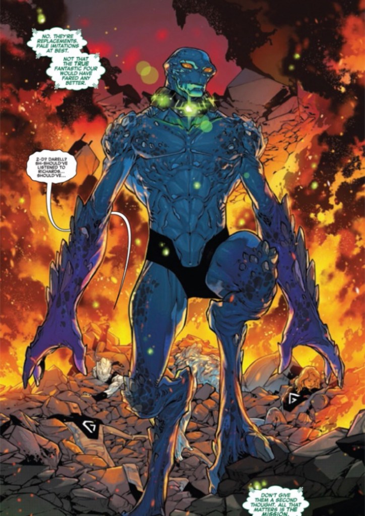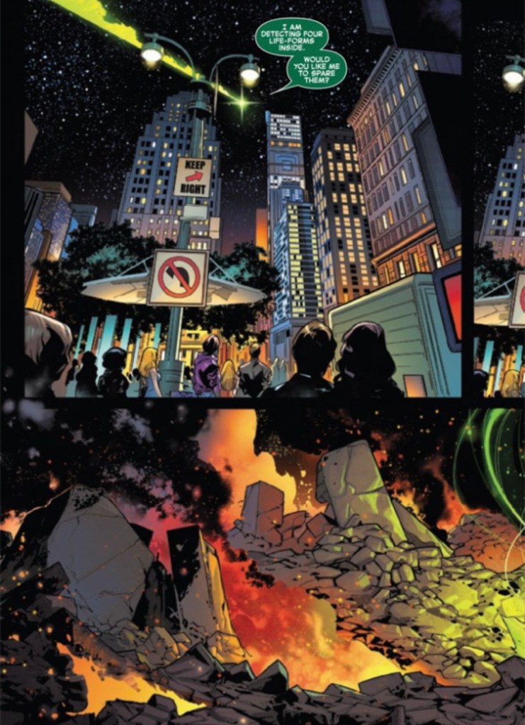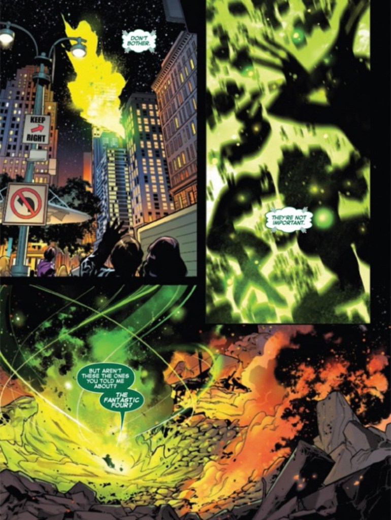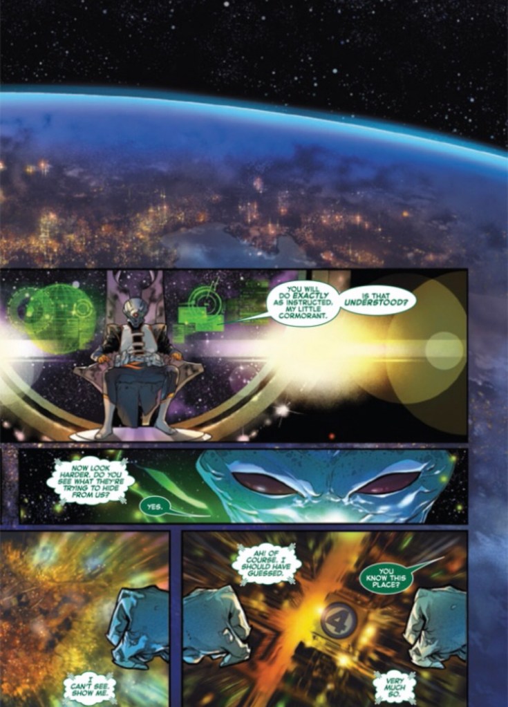 I’m usually not a big fan of these “(enter random number) hours before/from now” openings, but it was followed by someone I just flat out did not know, with a decent enough design to make me interested in the character. Also, small knit pick, there’s too many “heralds” in the Marvel Universe, tone it down Marvel. This mysterious duo crash land on Earth their target being somewhat affiliated with the Fantastic Four.