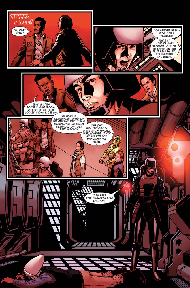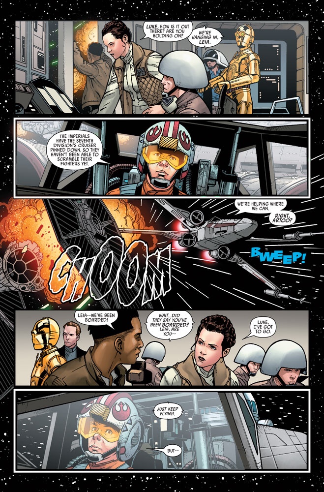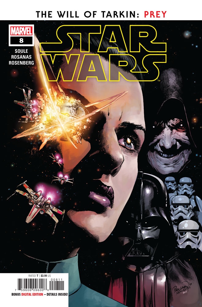 What’s behind COMMANDER ZAHRA’s quest for revenge against LEIA ORGANA? The powerful, dark answer revealed this issue! And the REBEL’S Fourth and Seventh Divisions will pay the price for Zahra’s revenge. See LUKE SKYWALKER, WEDGE ANTILLES and SHARA BEY battle against an onslaught of TIE fighters in the greatest dog fight of the series.