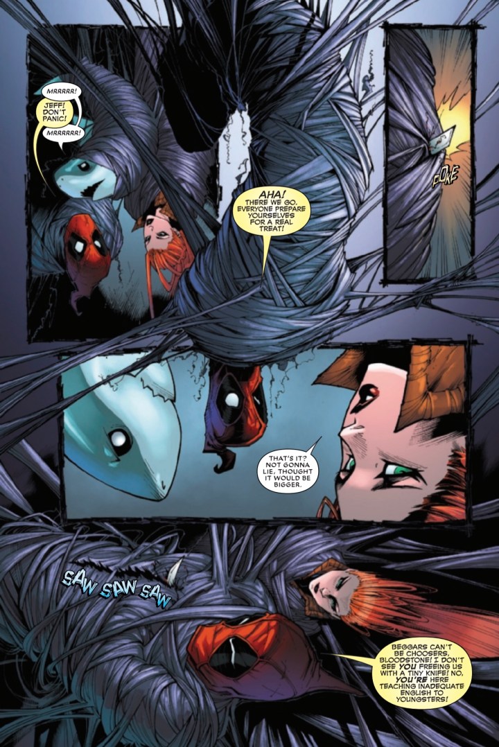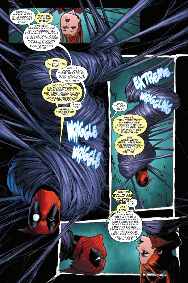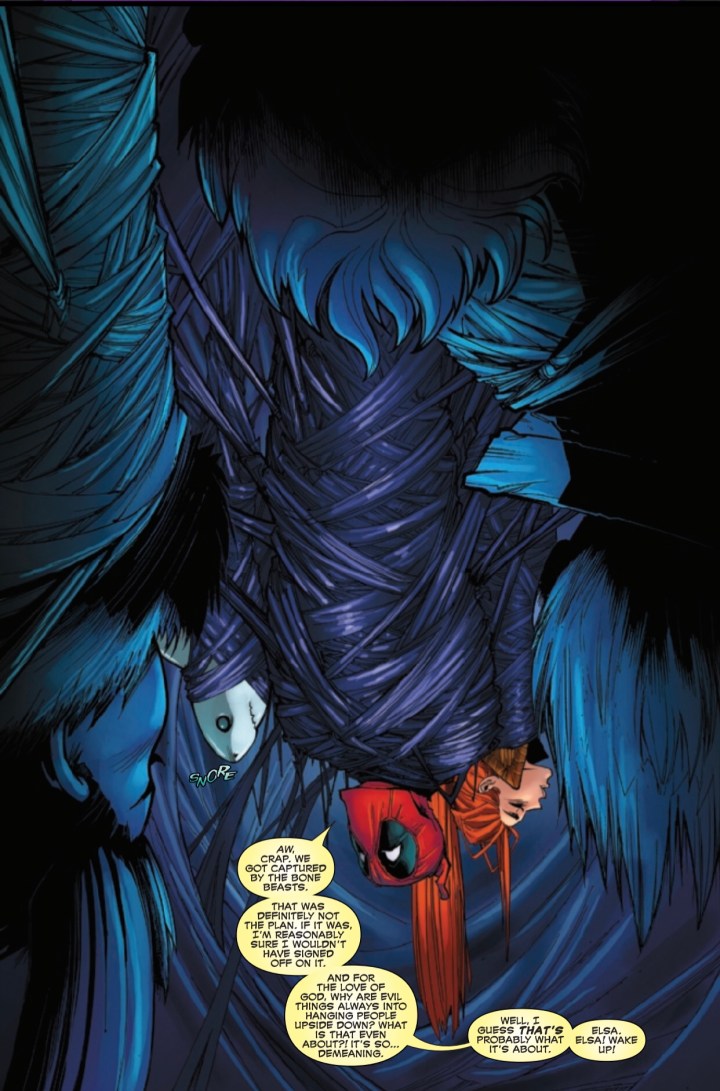 Elsa lied, and Deadpool died! Well, not yet. But he might! Which, given that this is Deadpool, means it must be a pretty spectacular lie. What is the ACTUAL truth of the Bloodstone curse? And what does it have to do with a dimension full of hideous goo? Don’t wear your nice clothes when reading this one – IT’S GONNA GET MESSY.
