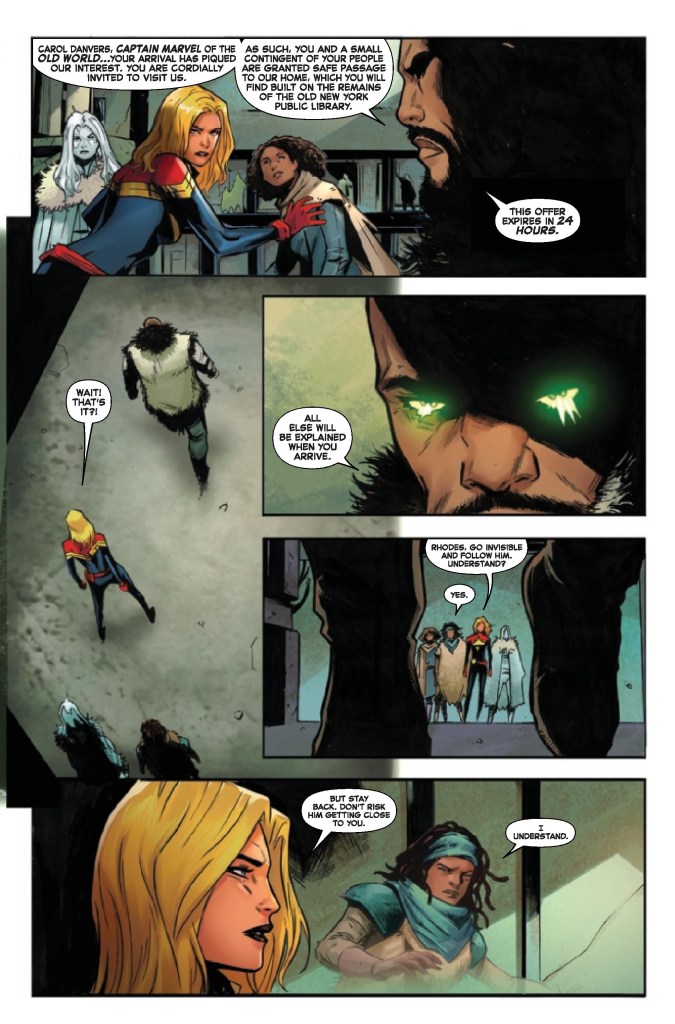 Luke Cage is alive. That was the cliffhanger of last issue. Which brings up the question who else in this armageddon hell scape may be alive from Carol’s past?