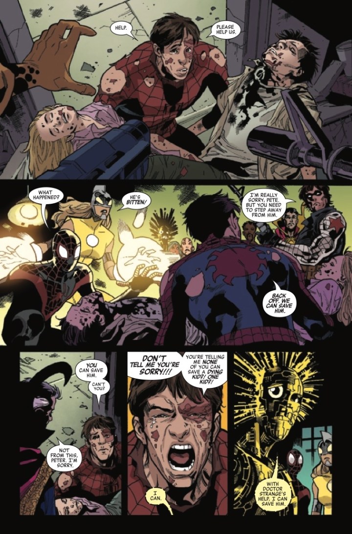 The world is overrun with the flesh-eating monsters that used to be the heroes who kept it safe. Spider-Man made a promise to keep people safe, and he’s not going to quit, even in the literal jaws of death…