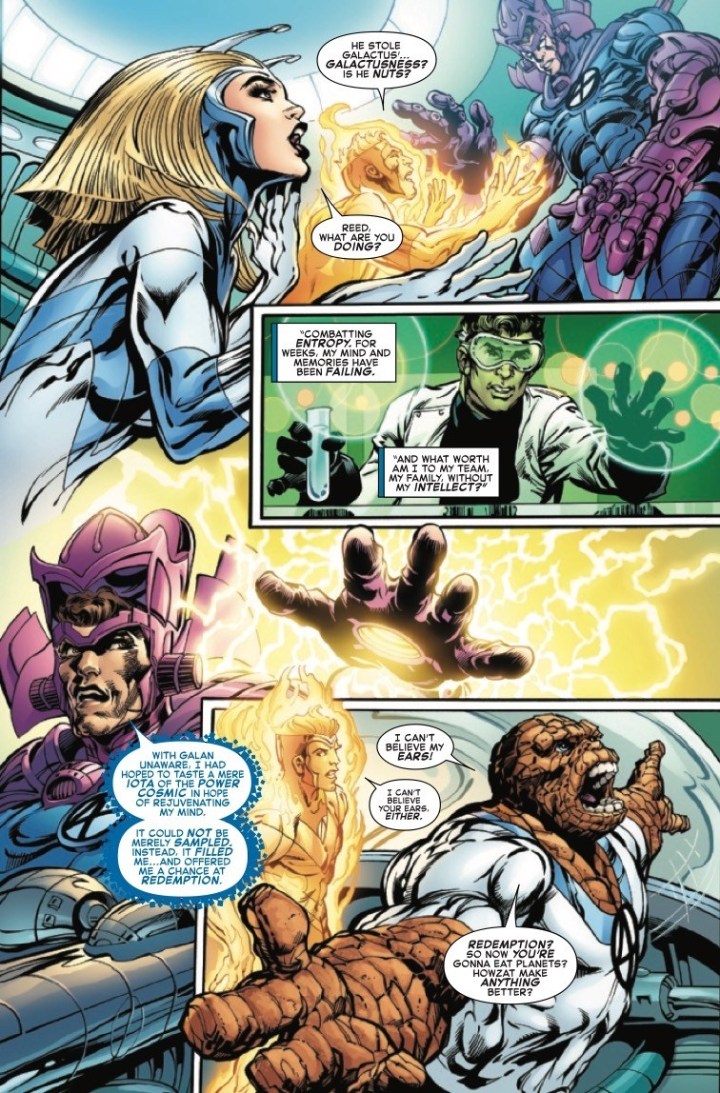 Reed Richards has made the ultimate sacrifice to save the cosmos from both Antithesis and Galactus, dooming himself to a life among the stars! Meet Mr. Galactic!