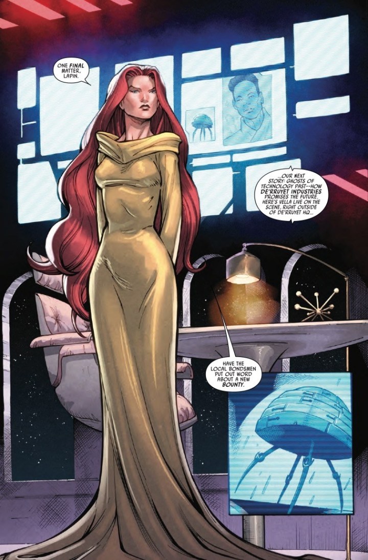 Someone sinister has put a price on DOCTOR APHRA’s head… and it’s none other than DOMINA TAGGE! Now Aphra’s running for her life, trying to shake every bounty hunter on her tail. But one of those is SANA STARROS… and for Sana, it’s personal! Aphra can’t out-think Domina or outrun Sana…what choice does she have left?!