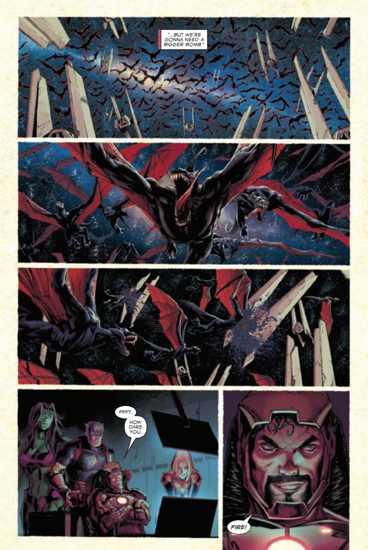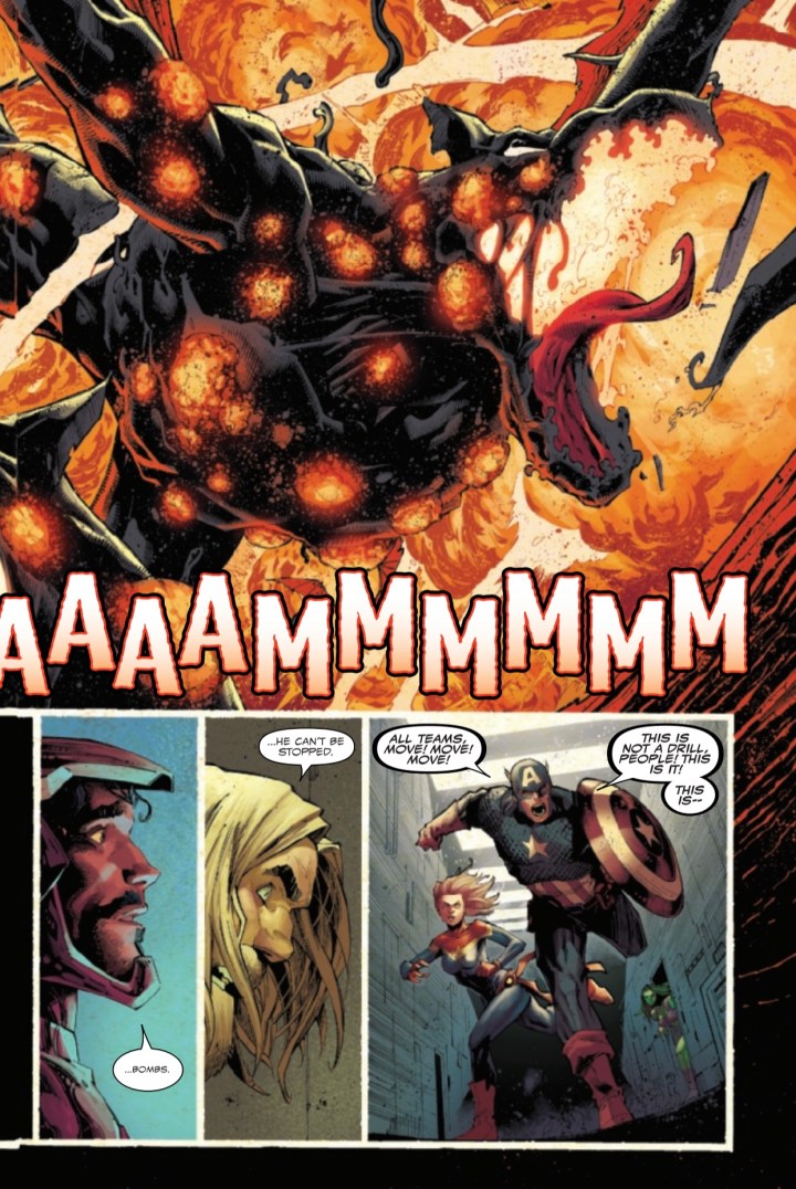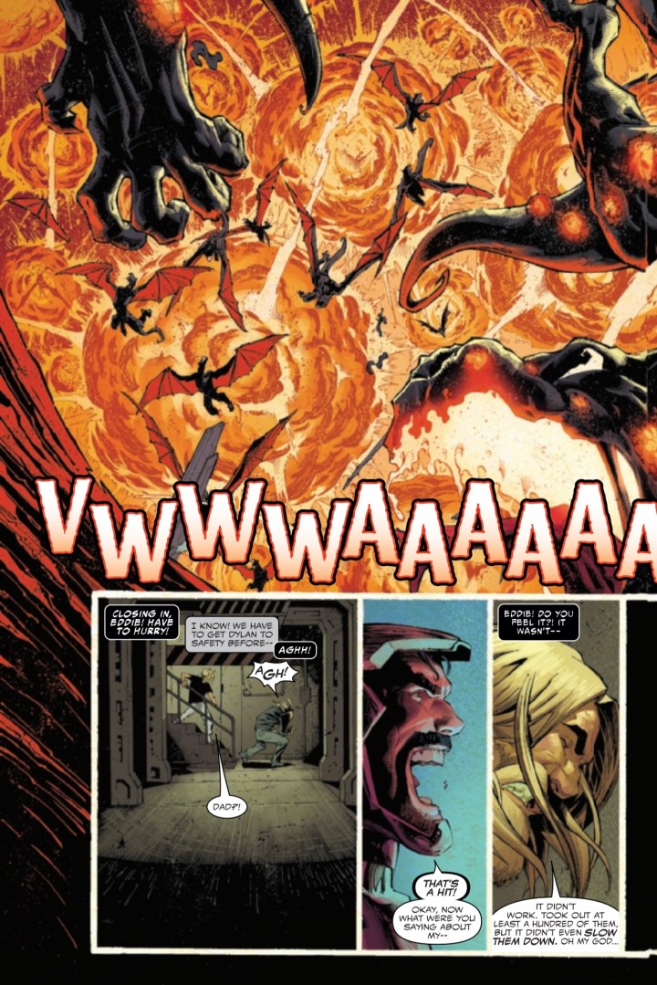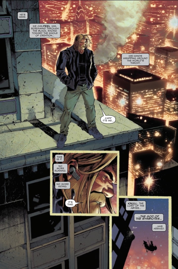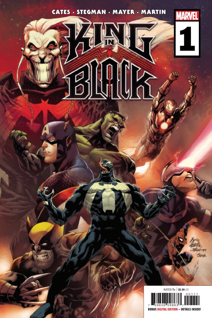 After a campaign across the galaxy, Knull’s death march arrives to Earth and, worse yet, he hasn’t come alone! With an army of hundreds of thousands of symbiote dragons at his command, the King in Black is a force unlike any Earth’s heroes have ever faced. EDDIE BROCK, A.K.A. VENOM has seen firsthand the chaos that even one of Knull’s symbiotic monsters can wreak – will he survive an encounter with the God of the Abyss himself?