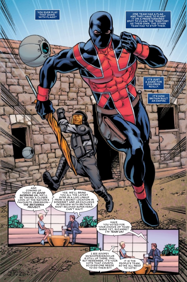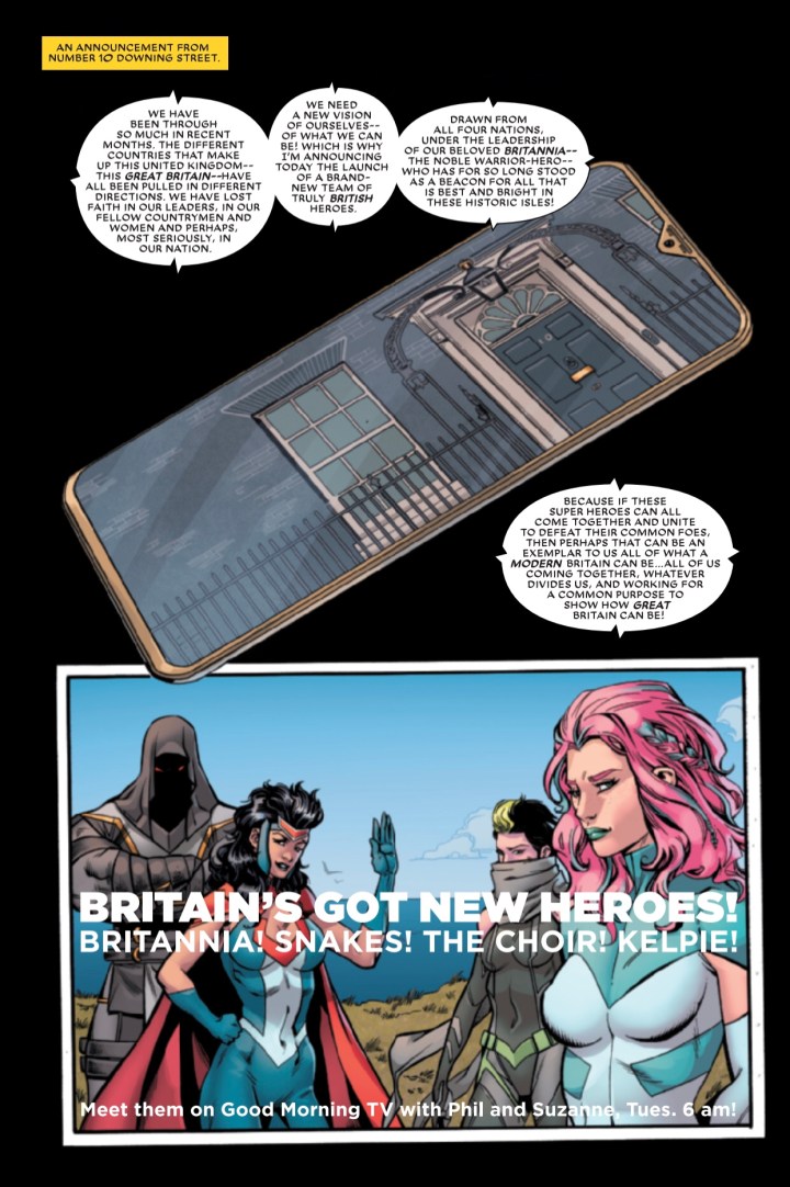 The grand unveiling of The Union! A team of super heroes gathered from all over the United Kingdom, featuring Union Jack, Snakes, Kelpie, Choir, and their fearless leader, Brittania! But when disaster strikes on their first public debut, in the form of the invasion of Empyre, the fledgling team is immediately pushed to their limits! Don’t miss out on an exciting new chapter of Marvel from legendary creators, Paul Grist (JUDGE DREDD, JACK STAFF) and Andrea Di Vito!