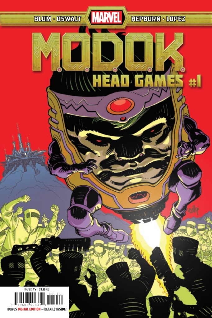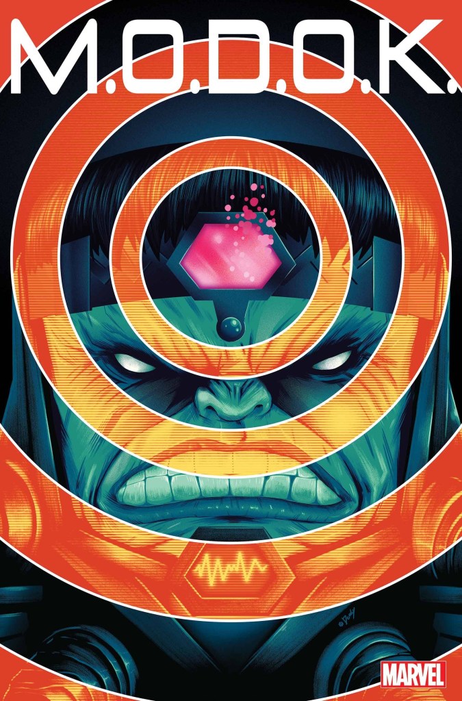Do you ever rub your eyes and suddenly find you’re awake and not asleep, as you’ve grown to suspect you were? M.O.D.O.K., up till this point in his life would have probably eaten the spleen of Vincent Price for posing this question to him. After the events of this issue maybe not so much. Maybe after this series we might have to be refer to M.O.D.O.K. by his original name George Tarleton?? Let’s dive in and find out.
