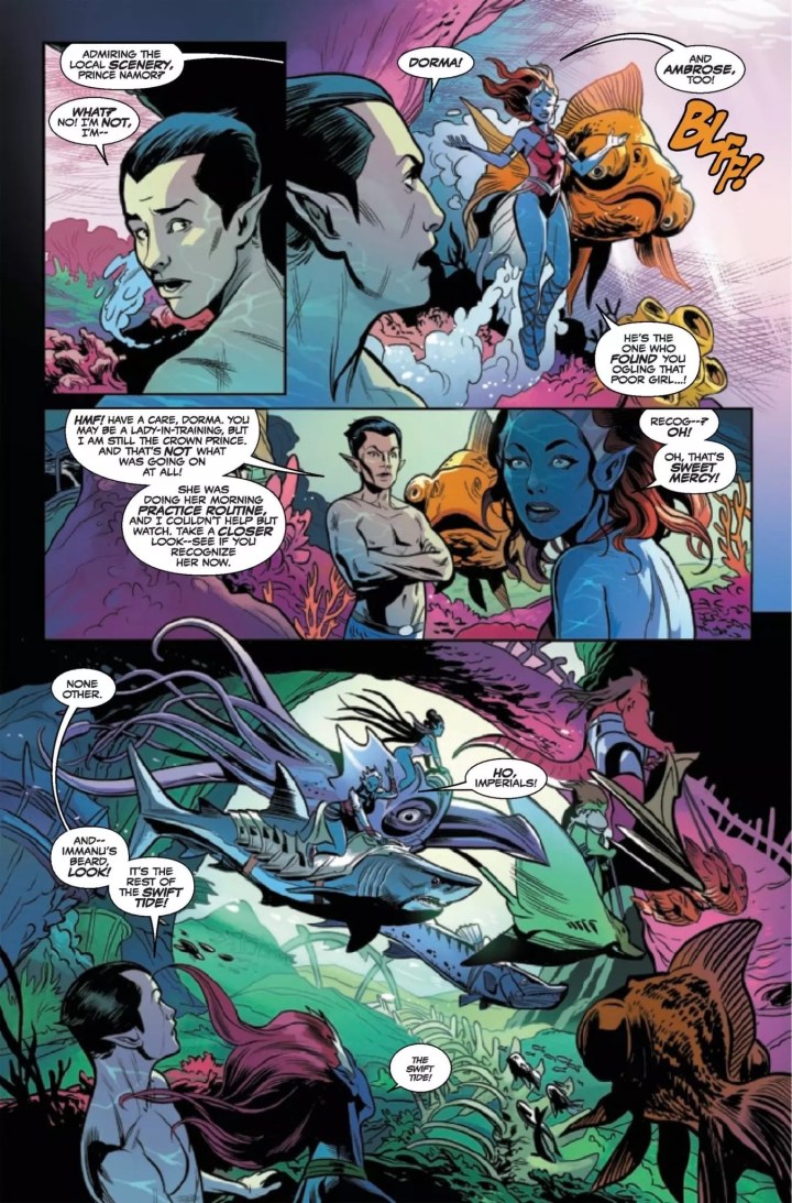 Spinning out of the KING IN BLACK epic comes a dark, chilling story of the birth of Atlantis’s greatest villains. The players: Namor, Lady Dorma of Atlantis, the outsider Attuma – all still in their teen years – and The Swift Riders, the Atlantean Empire’s greatest heroes. It begins with alliances and possibility, as Attuma’s people may join the Empire…but what lies ahead is tragedy, betrayal, and the unleashing of dangerous, deadly magics. A deep dive into Marvel history…and the birth of a threat that will only grow in menace across time.