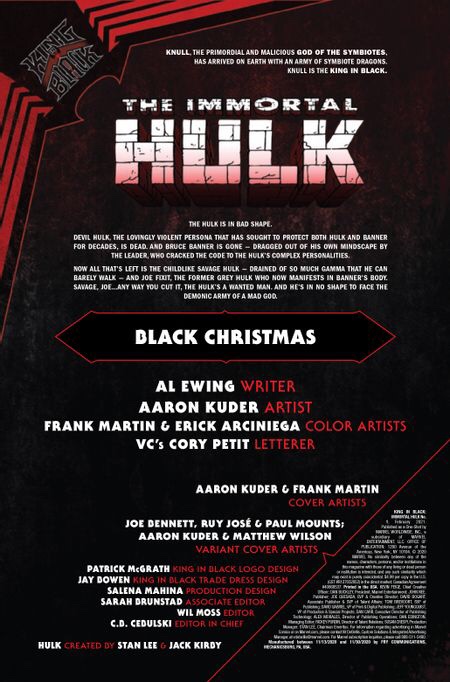 If you want to get your hands on this week’s issue of KING IN BLACK: IMMORTAL HULK #1, click the Amazon link HERE. Additionally, if IMMORTAL HULK related titles are your jam, click HERE to grab the latest titles. Or, if you’re intrigued by the KING IN BLACK event, click HERE! And finally, if you’re looking for something else to read, check out my Amazon Online Comic Shop by clicking HERE. Thank you all for the read and continued support. Stay safe and stay healthy.