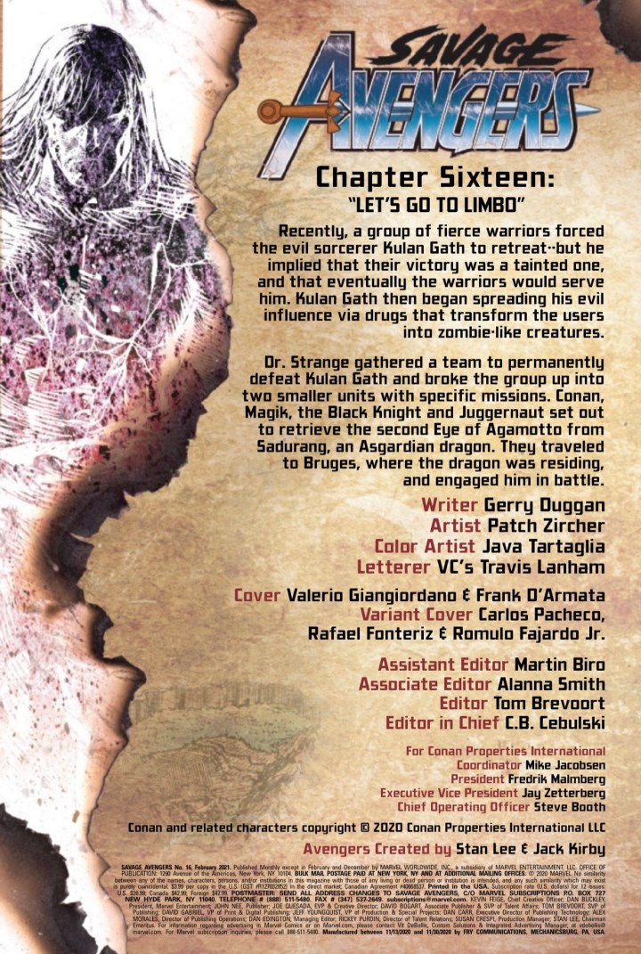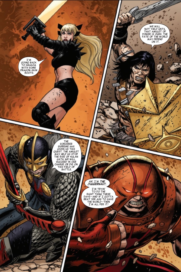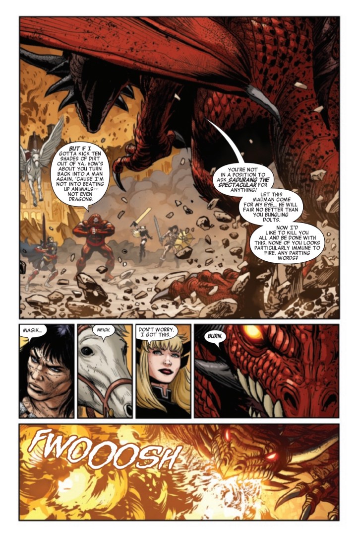 LET’S GO TO LIMBO! Magik joins Conan with guest Avenger the Black Knight and…the Juggernaut. An Asgardian dragon with the second eye of Agamotto doesn’t stand a chance. Or maybe he does. Either way, the Sweet Sixteenth of this comic is going to be a knock-down, drag-out fight that will punch you upside the head. Fair warning.
