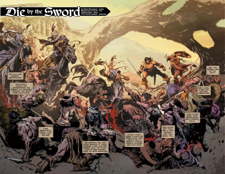 Chris Claremont and Roberto de la Torre team up to unveil a turning point in Conan’s career as a mercenary! Kurt Busiek and Pete Woods recount an early brush with sorcerous forces that will shape Conan’s destiny!