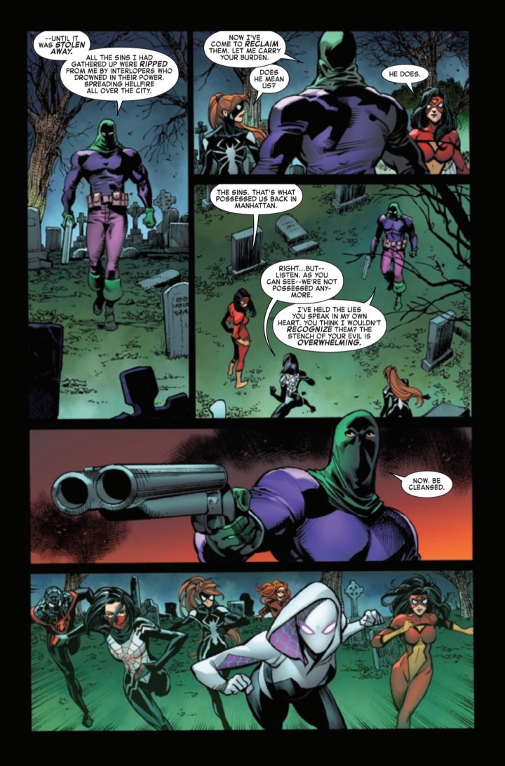 The Order of the Web faces Sin-Eater. And if you saw what Sin-Eater did to Spider-Man in ASM #49, you know just how much trouble the other Spiders are in! Also, what is Mary Jane Watson’s part in “Last Remains”? Don’t miss this chapter that raises her stakes by about a million times!