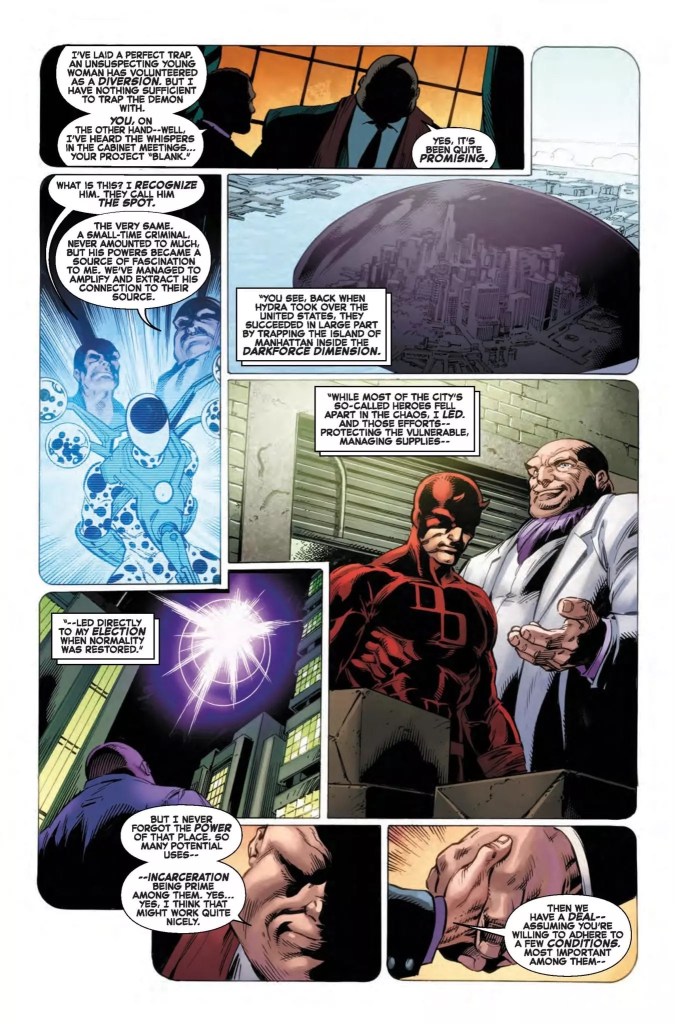 It had been so long, I forgot this was Nick Spencer’s M.O. I guess Spencer is back to his old habit of drawing out stories by juggling multiple new and old plots and characters, something I used to criticize him for during his Doctor Doom/Chameleon/Spidey 2099/Tablet of Life/Kingpin/Robbie dating a supervillain days.