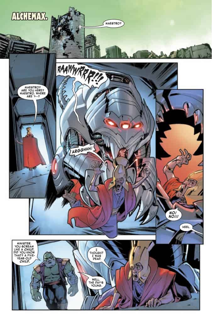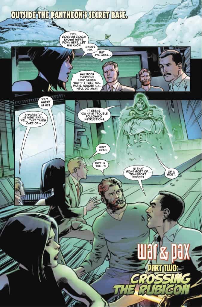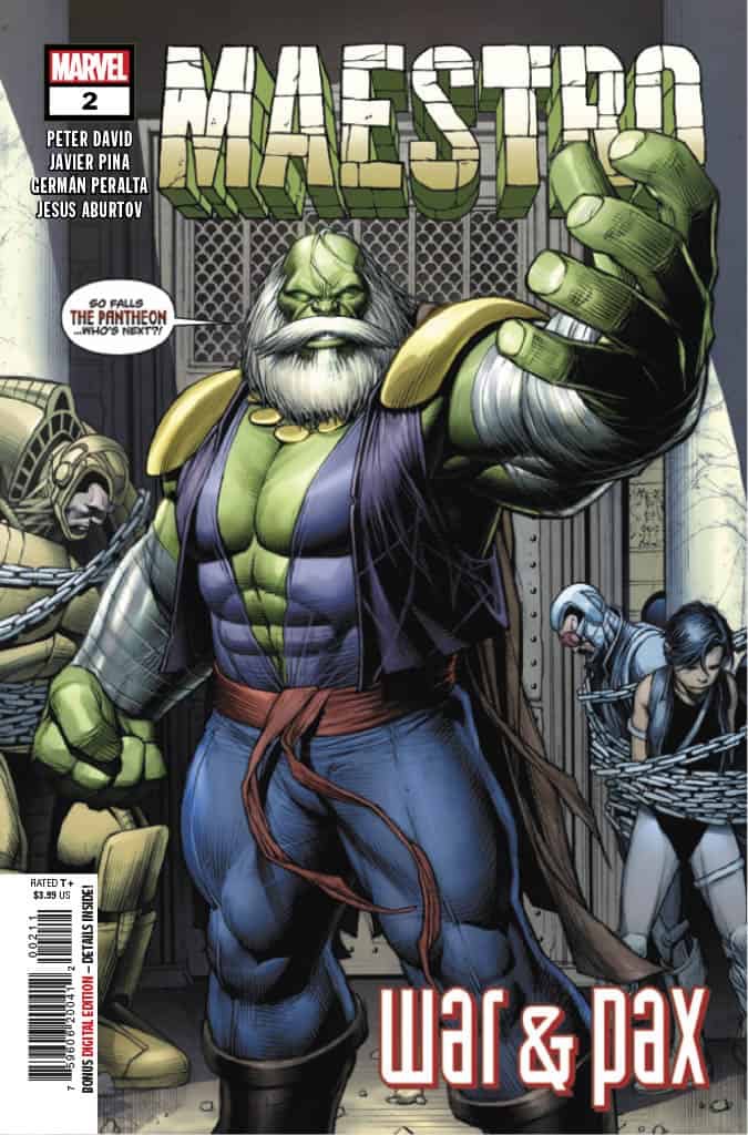 After destroying a rival brigade, our new MAESTRO realized that his rule would still have opposition even within his people unless he stifled his people quickly and firmly. So, through a new movement called PAX, he intends to destroy the hopes and dreams of those left on the planet while also uniting the people that are left under his green thumb. Any that oppose this new world order, will be terminated. That said, the MAESTRO isn’t the only immortal left on the planet. The Pantheon recognizes a HULK too powerful to leave alive. Let’s smash into MAESTRO: WAR AND PAX #2 by Peter David to see if the Pantheon, along with DOCTOR DOOM, can stand a chance against the MAESTRO and his reign of tyranny.