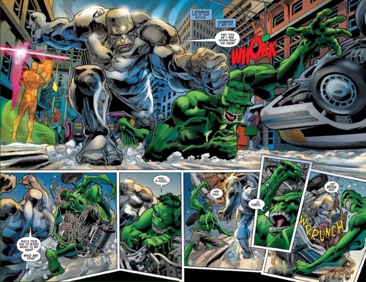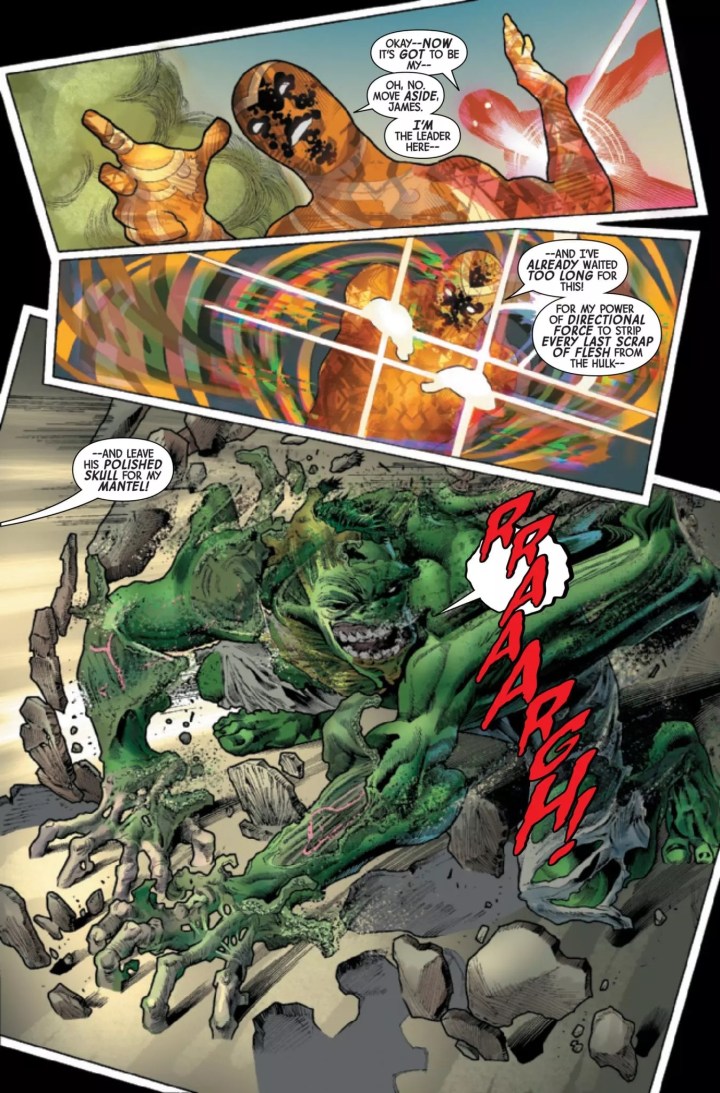 As you scan through the comic, look specifically at how he extenuated the size of characters like Sasquatch and Ironclad. Ironclad is gargantuan compared to even the HULK. Furthermore, watch specifically as the flesh is ripped off the HULK’s body by the U-Foes. Or, focus on the fight between “Rick” and Sasquatch and take notice as to how relentless this new Doc Samson/ Sasquatch is. Furthermore, take heed of the layout of the panels and how Bennett zigzags the reader through the emotional elements of the issue. My point: Bennett continues to provide the energy, the action, the power, and the presence that has dominated this series since issue one. I’m excited to see what comics are in his future and I absolutely can’t wait to pick them up.