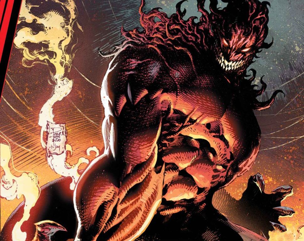 The Toxin symbiote’s death and return is alluded to, but never really dived into in this book.