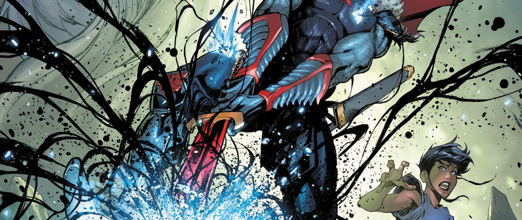 Black Knight: Curse of the Ebony Blade #2 finds Dane Whitman struggling to come to terms with the fact that he’s back from the dead after a very unpleasant beheading. After summoning the spirit of his long-deceased mentor, Sir Percival of Camelot, Dane learns about the origin of the Ebony Blade and realizes the identity of a villain killing experts of Arthurian legend.