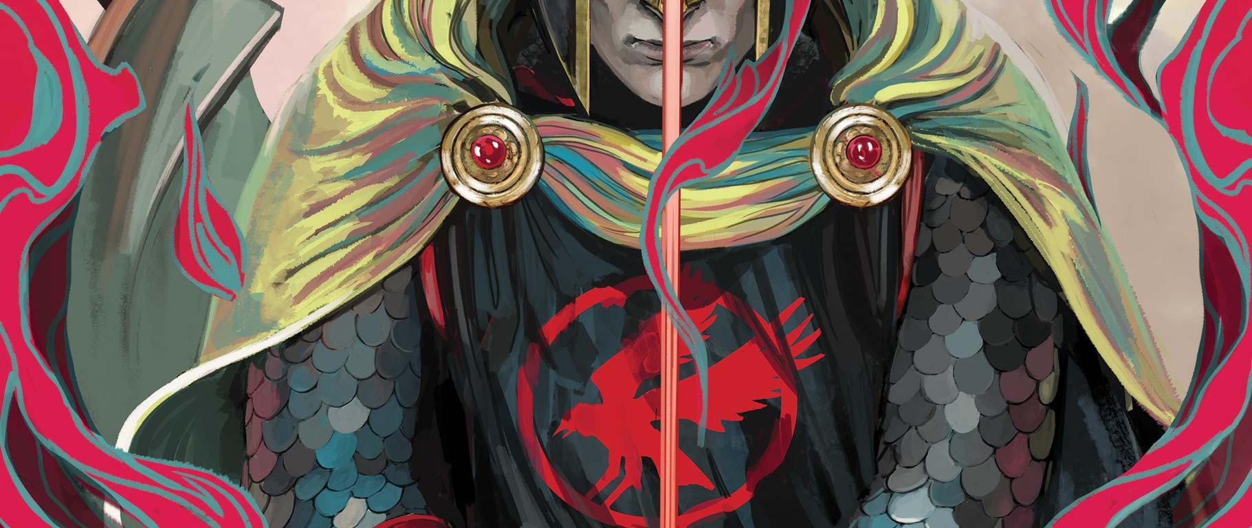 Dane Whitman and friends use the Ebony Blade (with a boost from Elsa’s Bloodgem) as a compass to find the Ebony Chalice before Mordred gets to it. It’s a race to the finish, and the two sides duke it out while Jacks gets a history lesson on the first Black Knight’s encounter with the God of Thunder, courtesy of an entrancing vision from Merlin’s familiar.