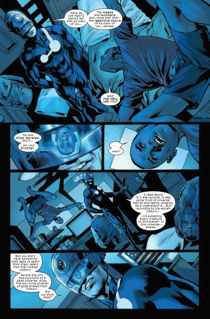 Hickman’s script centers on the Maker (an evil version of Reed Richards from the Ultimates universe) who escapes his prison and begins a plan to remake a new Ultimates Universe in his own image by altering or eliminating the origin stories of every hero that could possibly oppose him.