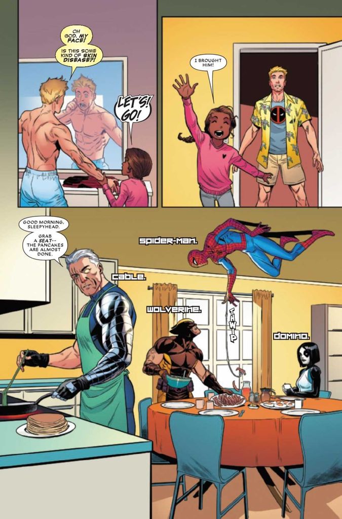 Deadpool #8 finds Wade Wilson waking up to a new body, a new life, and his estranged daughter, Ellie, by his side. Is it all a dream or something much worse?
