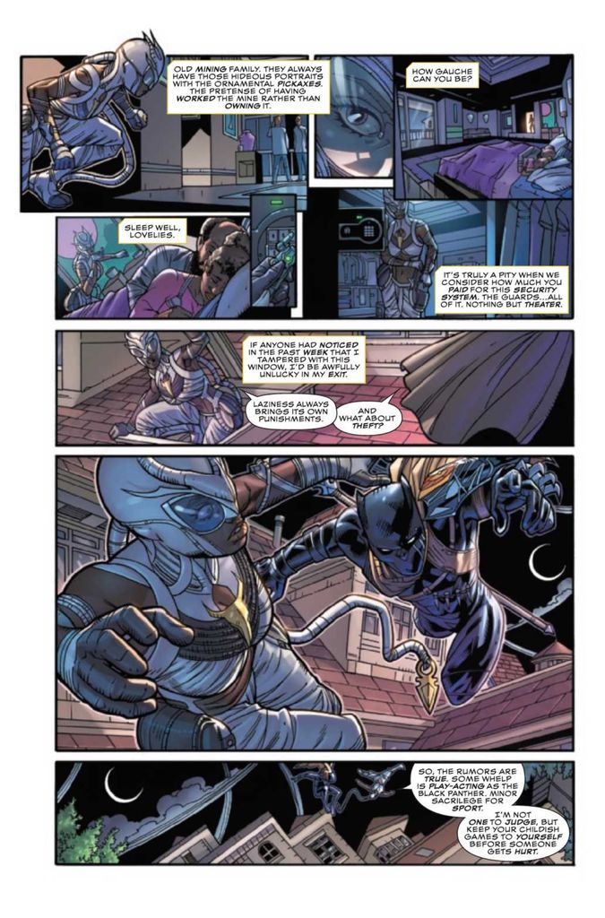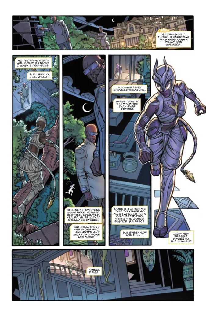 After reading that description, it should be obvious that this is a Black Panther comic in name only. Swap out the naming conventions and the Wakandan aesthetic, and it becomes clear Ever Ewing is writing a Batman comic in disguise. Why? Who knows. But if this comic is written like a Batman comic with Wakandan skin, it’s a pretty boring Batman comic.