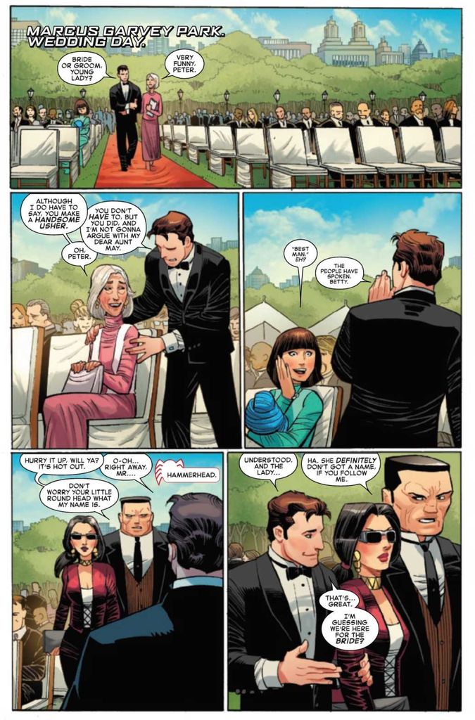 When last we left the Amazing Spider-Man, he tangled with Doc Ock and the ocktoids to save the now-reformed Norman Osborn. Now, Peter takes Randy out for the saddest bachelor party celebration in Marvel history while Janice parties with her super-villain besties before the big day. When the nuptial moment arrives, a part-crasher ruins the day and possibly ends a life.