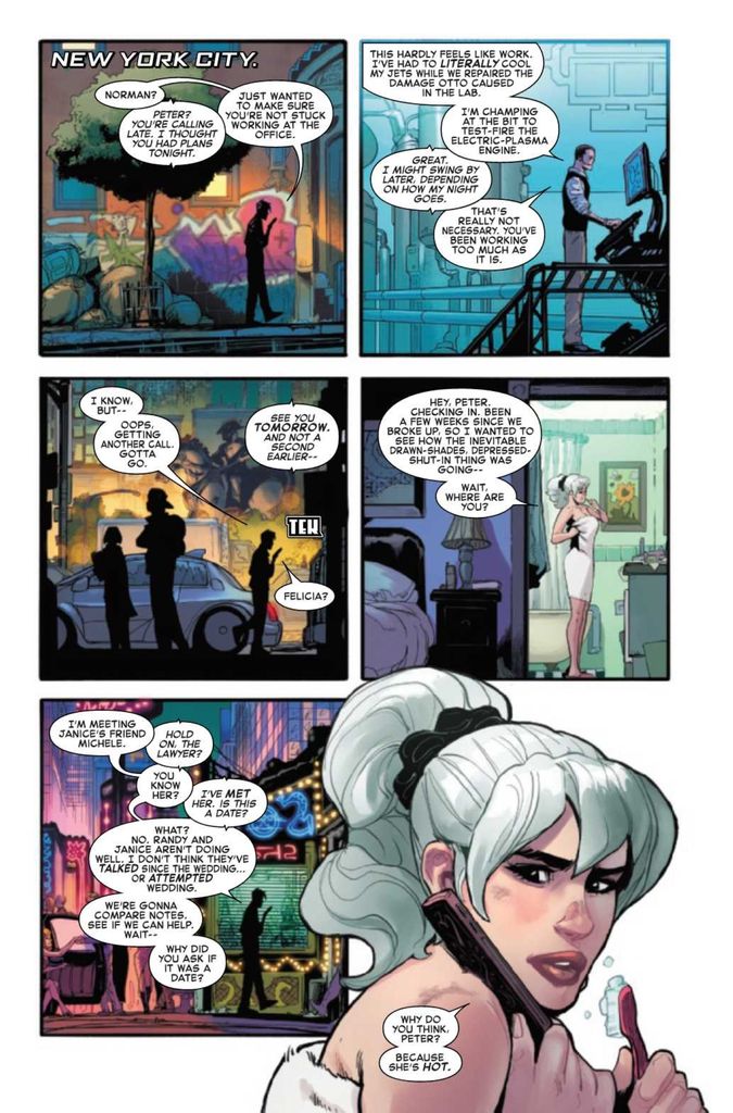 When last we left Spider-man, he served as best man at Randy Robinson’s wedding – A wedding that never happened because Shotgun showed up to put bullets in Tombstone’s chest. Oh, and Felicia broke up with Peter. Now, Peter goes out on a date-not-date with Michele (Janice’s maid of honor), making Felicia mildly jealous in the process.