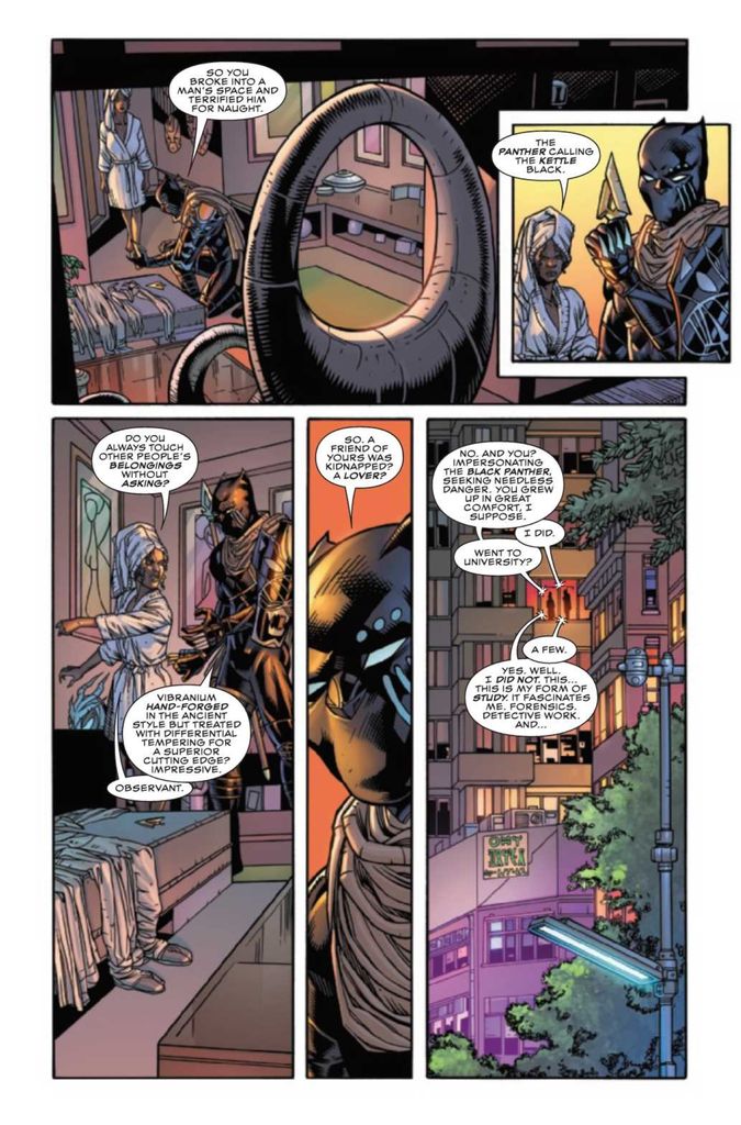 What’s not so great about this comic? The closer you look, the more obvious it becomes that Ewing is writing a Batman/Catwoman story with a Wakandan coat of paint. There’s already way too much Batman material oversaturating LCS bookshelves, so when you pick up a Black Panther comic, what you don’t want is to read another Batman story. We’re not talking about some vague similarities here. Top to bottom, this is a Batman/Catwoman story.