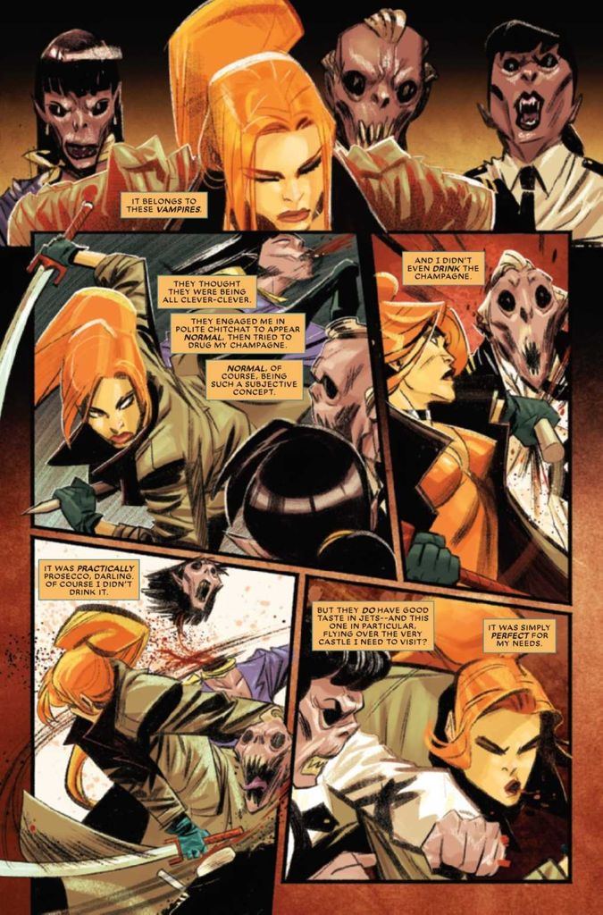 Derek Landy’s script centers on Jack Russell, aka Werewolf By Night, and Elsa Bloodstone running into each other in Bavaria with competing missions to rescue a kidnapped girl who’s destined to be the central sacrifice in Doktor Nekromantik’s world-ending ritual. When the supernatural heroes clash, they decide to partner up, reminiscing about their romantic past while they slash, bite, and shoot their way through a spooky castle full of monsters. Unfortunately, the Doktor’s timetable is much sooner than expected, which leads to Demon Kings, invading darkness, and so many tentacles.