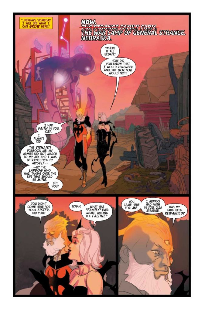 Doctor Strange #8 finds Clea offering her allegiance to General Strange while Stephen petitions the Vishanti to help put down the monster they created.
