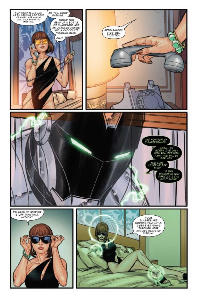 The Invincible Iron Man #11 finds Tony Stark and Emma Frost on their “honeymoon” to Hawaii as a cover for Tony to get his hands on the nearest stockpile of Mysterium.