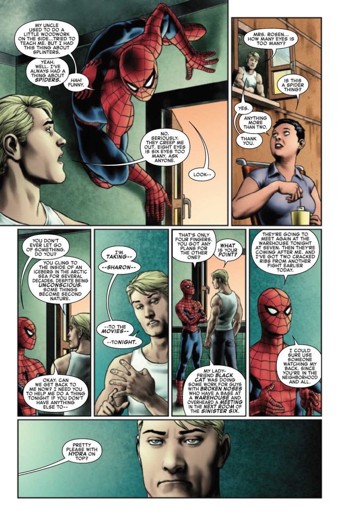 Each plot thread has its merits, but the struggle with this issue is twofold. First, the three threads are given equal page space, which makes for a very busy comic. Second, Steve’s exploit thread in the present is the least interesting of the three. Even when Spider-Man shows up (per the cover), he’s only in the comic long enough to act as a plot device that further drains Steve’s time and energy. When the main character is the least interesting thing about his comic, that’s a yellow flag.