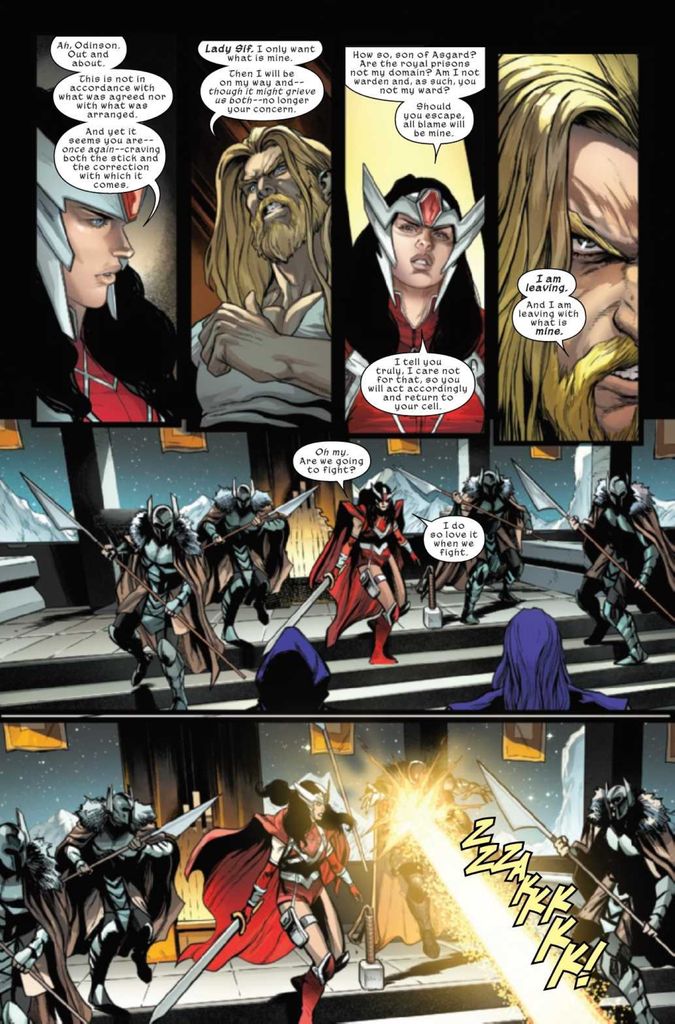 Now, Tony and Reed infiltrate Asgard to rescue Thor, who sits in an Asgardian prison for treason under the watchful eye of his warden, Lady Sif. The prison break is successful, and Lady Sif is pulled into the teleport to become an unwilling participant in the hero-building team. With more muscle, the team decides to raid a Latverian storehouse where the Maker kept artifacts responsible for creating heroes, hoping the artifacts would be the key to creating an avenging army strong enough to face the Maker one day.