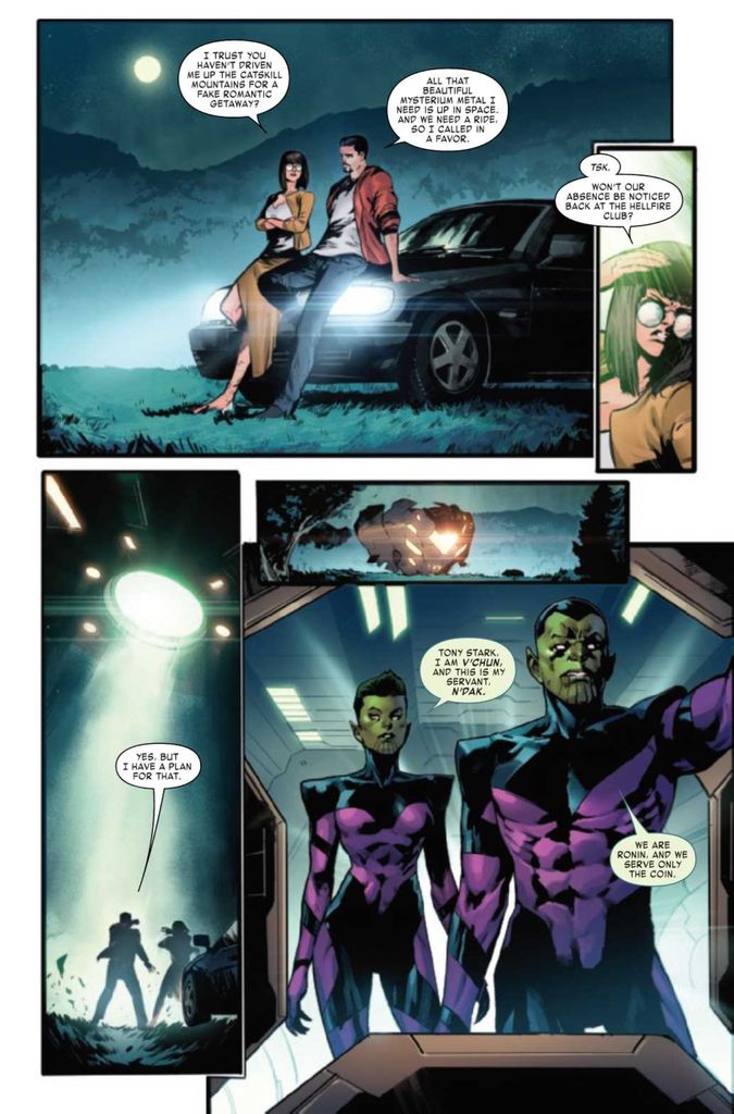 Invincible Iron Man #13 sends Emma, Tony, and Starfox(?) into space to retrieve the largest store of Mysterium.
