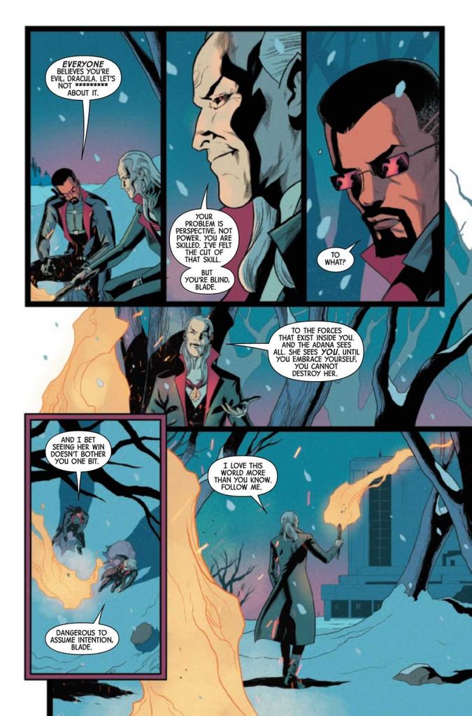 What’s not so great about Blade #6? In terms of drama, memorable moments, energy, and wow factor, the issue falls flat. This should be a big moment for Blade to ask for help from his most hated enemy, but his time with Dracula has all the tension of a business meeting.