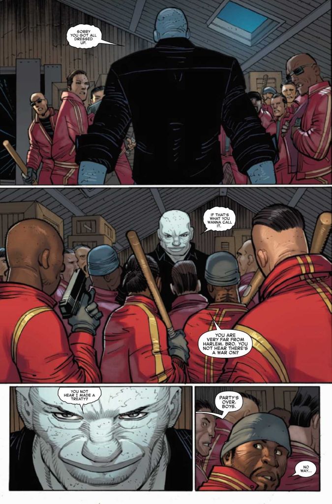 I call this issue dumb fun because the chaos of warring gangs doesn’t mean much to the new, casual, or even hardcore readers. The Tracksuit Gang is about to attack the Inner Demon Gang? Uhh, okay, sure. Unless you have a bizarrely deep knowledge of all the NYC Gangs, what they do, and their importance in New York’s balance of criminal power, it’s all noise. You might as well tell me the Balloon Makers started shooting up the headquarters of the Sallie Mae Society, and it would have just as much impact. In an effort by Wells to go big, he went wide but failed to make it deep.