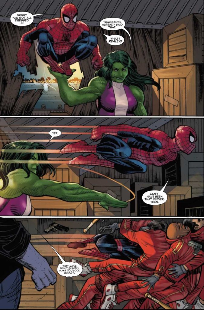 When last we left Spider-Man and his Amazing friends, Team Spidey split up to quell the fighting hotspots around the city, leaving Spidey partnered up with She-Hulk. Meanwhile, Tombstone woke up from his coma to learn his daughter, Beetle, is doing more than just protecting her father’s territory.