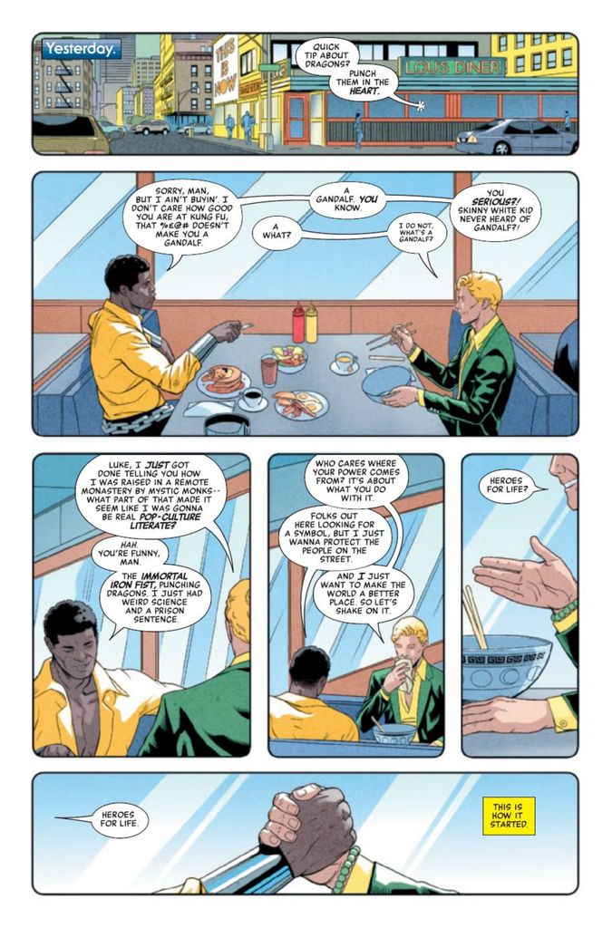 Kelly and Lanzing’s end-of-times tale focuses on Luke Cage as the last hero alive on Earth as he travels to stop Khonshu and the Immortal Moon Knight from enacting a humanity-wide sacrifice to gain ultimate power. Luke Cage is willing to make such a journey because he’s spent years infusing himself with the powers of assorted heroes, from the Hulk to Sentry to Iron Fist. On the opposite side of the battle, the Immortal Moon Knight is made manifest by Khonshu living inside the dead body of Danny Rand, setting up an emotional and physical battle for Power Man.