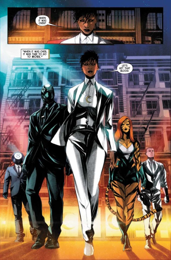 When last we left Moon Knight, he stopped the latest Black Spectre’s attempt to activate a resonance machine that would drive NYC residents insane. The rationale behind such a plan was admittedly weak, but Jed MacKay kept up the tension throughout Moon Knight’s gauntlet climb to the top of an abandoned building to stop the machine and end Black Spectre’s plans. The resulting explosion supposedly cost Moon Knight his life.
