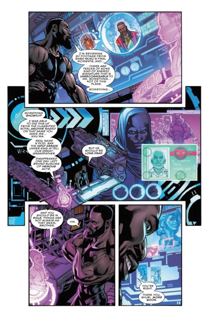 When last we left Black Panther, Aliiya Nikisu formed a tentative alliance with Kivu’Ma as the supernatural entity who aided her father in his secretive project. Elsewhere, Black Panther learned that Baba Nikisu and the people who disappeared from Birnin T’Chaka were somehow connected to the construction of a covert space station in orbit used for a secretive purpose.