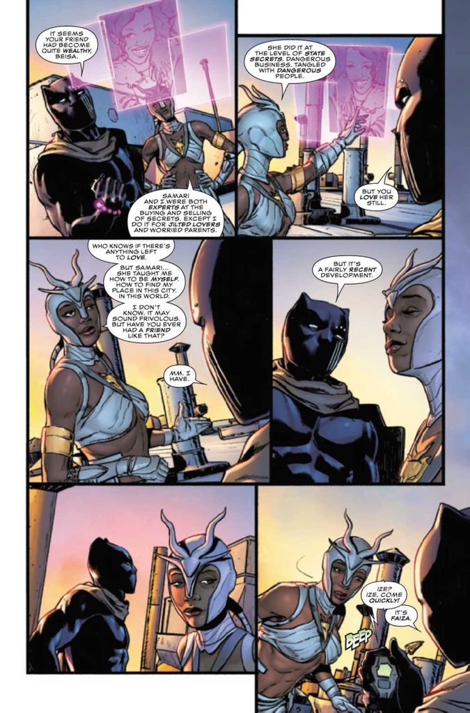 Black Panther #9 finds Aliiya Nikisu discovering the true nature of her father’s dealings with Kivu’Ma while Black Panther and Beisa search for their missing friend.