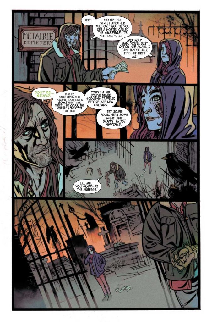 The Incredible Hulk #9 finds Banner and Charlie visiting the Big Easy when they cross paths with Betty Ross and a new monster with a habit of slicing and dicing bad people.