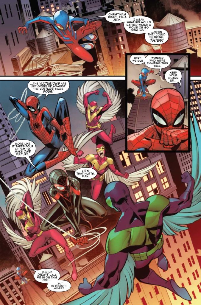 What’s not so great about Spider-Boy #4? As noted above, Slott sabotages his creation by making mockeries of potentially dangerous villains. The Vulturions may not be A-List Spider-adversaries, but there’s no need to devolve them into slapstick losers. You can keep the age-appropriate personality for Bailey without dumbing down everyone around him.