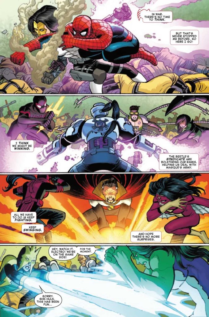 Did the tie-ins make a difference? No. In fact, the outcomes of the tie-ins aren’t a factor in the battle at all if you stick to ASM. Shang-Chi and Danny Rand don’t even show up to the battle until it’s over, as an example.