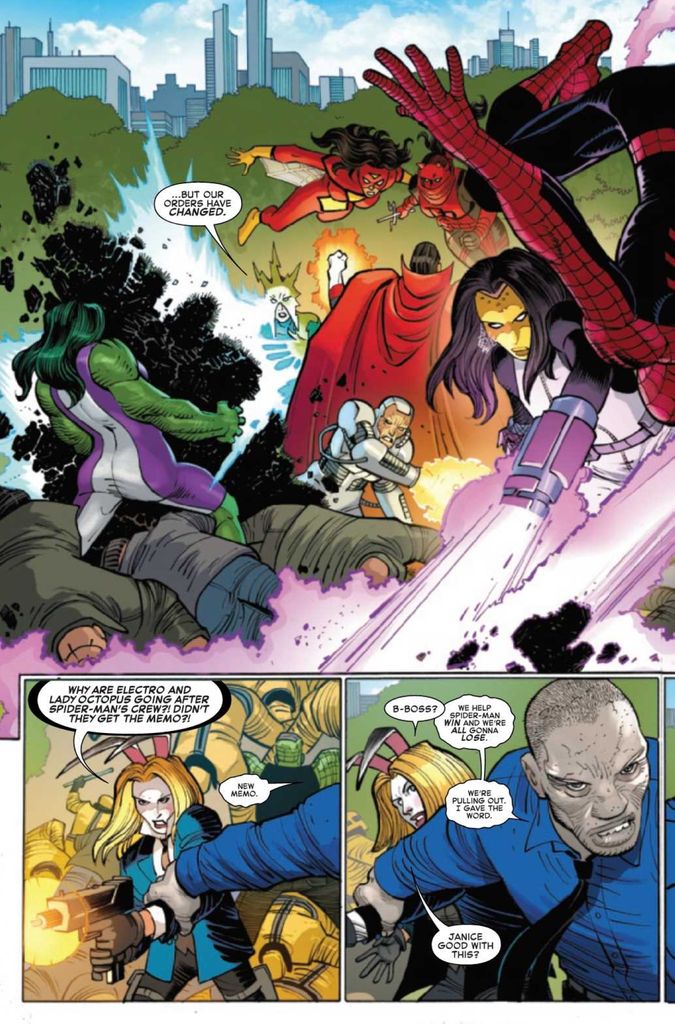What about Spider-Man? Didn’t this event set him on a new path or change his circle of friends? Nope. Worse, Spider-Man is barely a participant in this war. If you distill the victory down to who did what, Shotgun turned the tide, and even then, it’s not clear how freeing Silvermane and Count Nefaria from Madame Masque’s mind control made them less effective. In effect, Team Spidey won the battle because that’s what the script says.