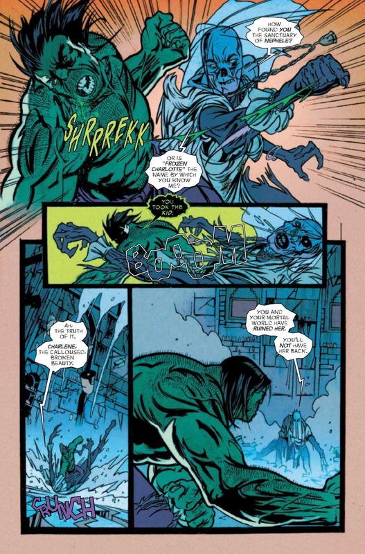 When last we left Hulk, he was led into secret chambers beneath the Big Easy by the ghost of a detective murdered by Frozen Charlotte years ago. There, Hulk found Frozen Charlotte, who reverted to her true form as a monstrous wraith who collects children’s souls and traps them in dolls as her children forever. Hulk also learned Frozen Charlotte’s true name is Nephele.