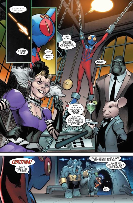 Spider-Boy #6 follows through on Madame Monstrosity’s plan to force Spider-Boy to submit to her experimentation by turning Christina into bait.