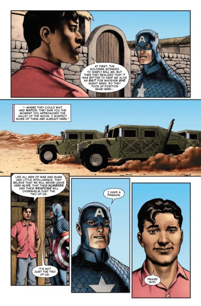 Captain America #9 embarks on the first leg of his mission to retrieve agents of change for the embodiment of Life before Death strikes them down.