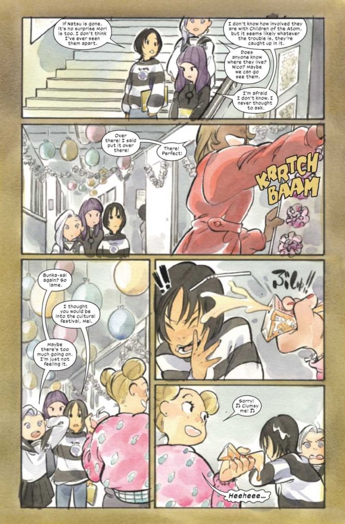 Further, Momoko has a habit of not following through on big moments in progress. What happened to the ghost hunter from the previous issue? Why did the girls see a big eye in the sky two issues ago during a festival? Where is Viper when all this is going on? Where is Psylocke and her brother? Where are Natsu, Mori, and Nico?