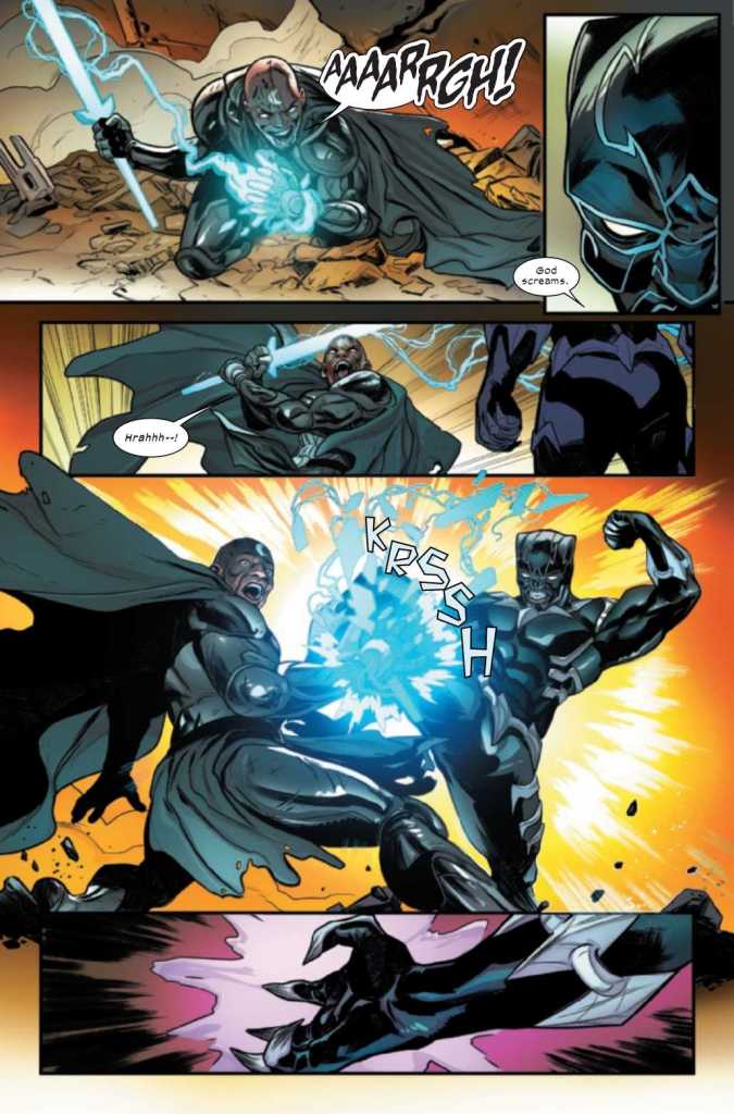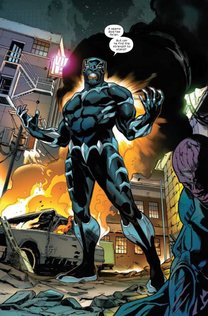 When last we left T’Challa in Ultimate Black Panther #9, Killmonger and Storm succeeded (but not really) in freeing Earth-6160’s Sorcerer Supreme from a maximum security prison. Meanwhile, T’Challa witnesses, while undercover, Khonshu’s charismatic showmanship that’s winning everyday citizens to his side.