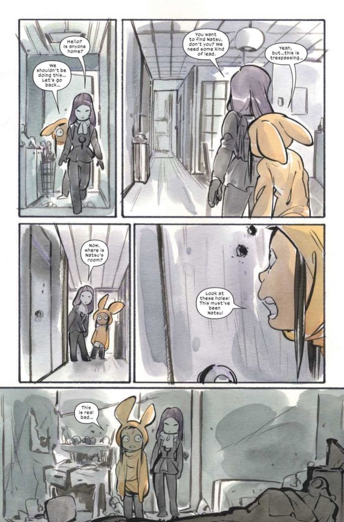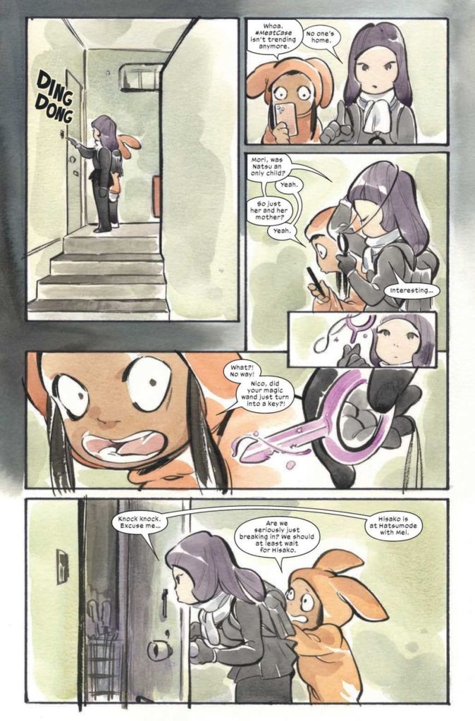Ultimate X-Men #11 begins with Nico and Mori arriving at Natsu’s apartment to find out where she went. Nico transforms her magic staff into a key to unlock the front door, despite Mori’s protests. They find Natsu’s room in tatters, suggesting (correctly) that something terrible happened involving Natsu’s optic blast power.